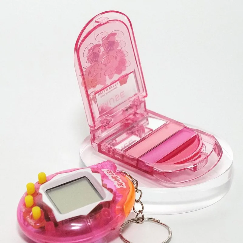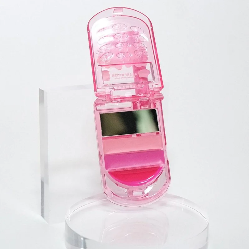 ✨ این پلت فانتزی که به شکل گوشی موبایل طراحی و تولید شده، دارای سه رنگ در طیف صورتی برای آرایش گونه و لب است.👄🎀✨