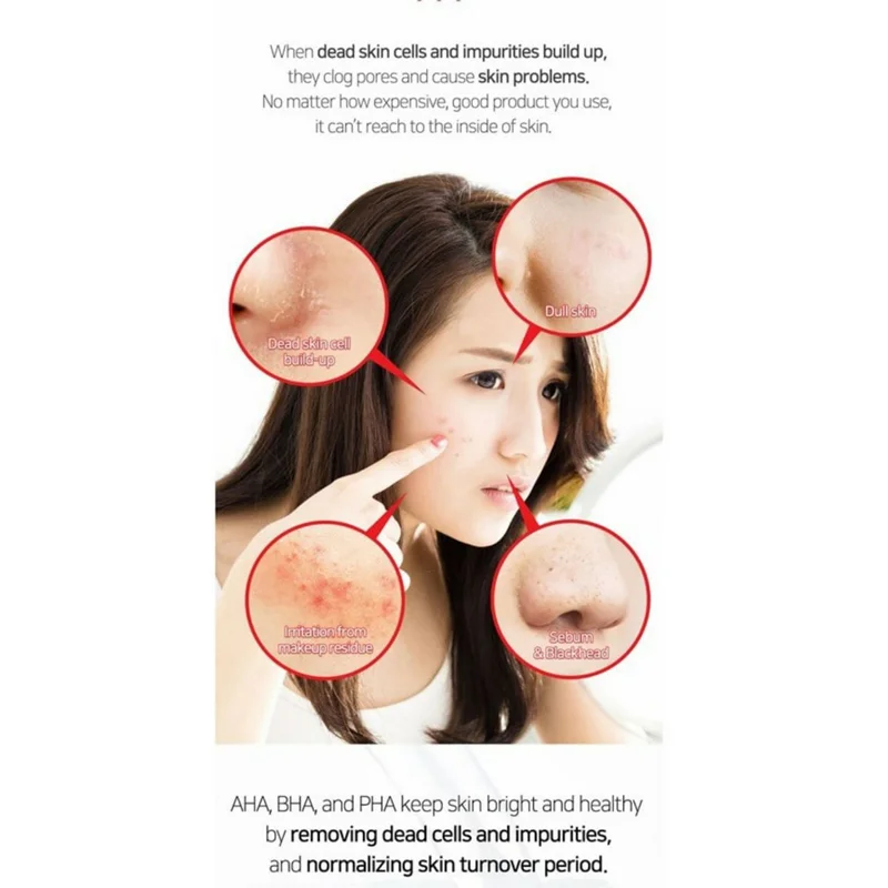 _ لایهبردارهای شیمیایی AHA، BHA و PHA که باعث پاکسازی پوست و منافذ از انواع آلودگی، سلولهای مرده و پوستههای اضافی و سبوم میشوند و چرخهی تکثیر سلولهای پوست را به حالت نرمال برمیگردانند. این ترکیبات به رفع انواع آکنه و جوشهای سرسیاه کمک میکنند.🧪🔬