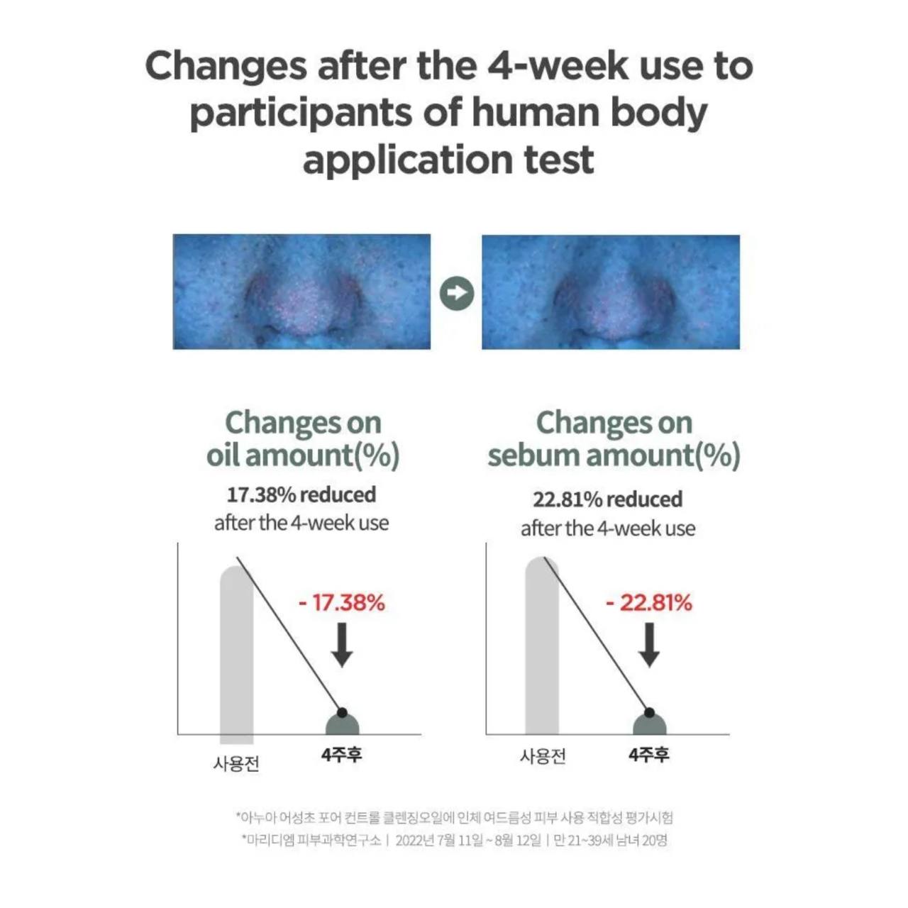 _ کاهش چربی پوست تا ۲۲.۸۱ درصد، کمک به کنترل و از بین بردن انواع جوشهای سرسیاه و سرسفید به همراه جلوگیری از ایجاد آنها، کاهش سایز منافذ پوست و بهبود ظاهر آنها.🌿💆🏻♀️