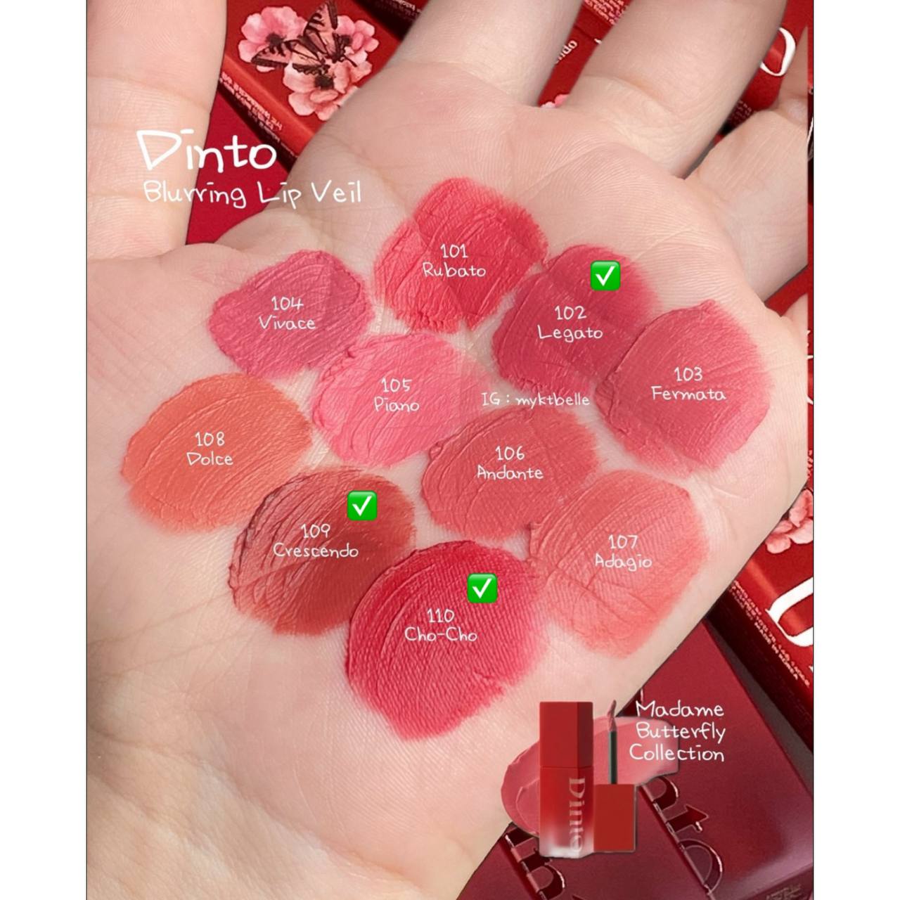 ✨ این محصول یک تینت لب کاملا مات و مخملی از کالکشن Madame Butterfly برند آرایشی Dinto است. 🥀👄☁️
