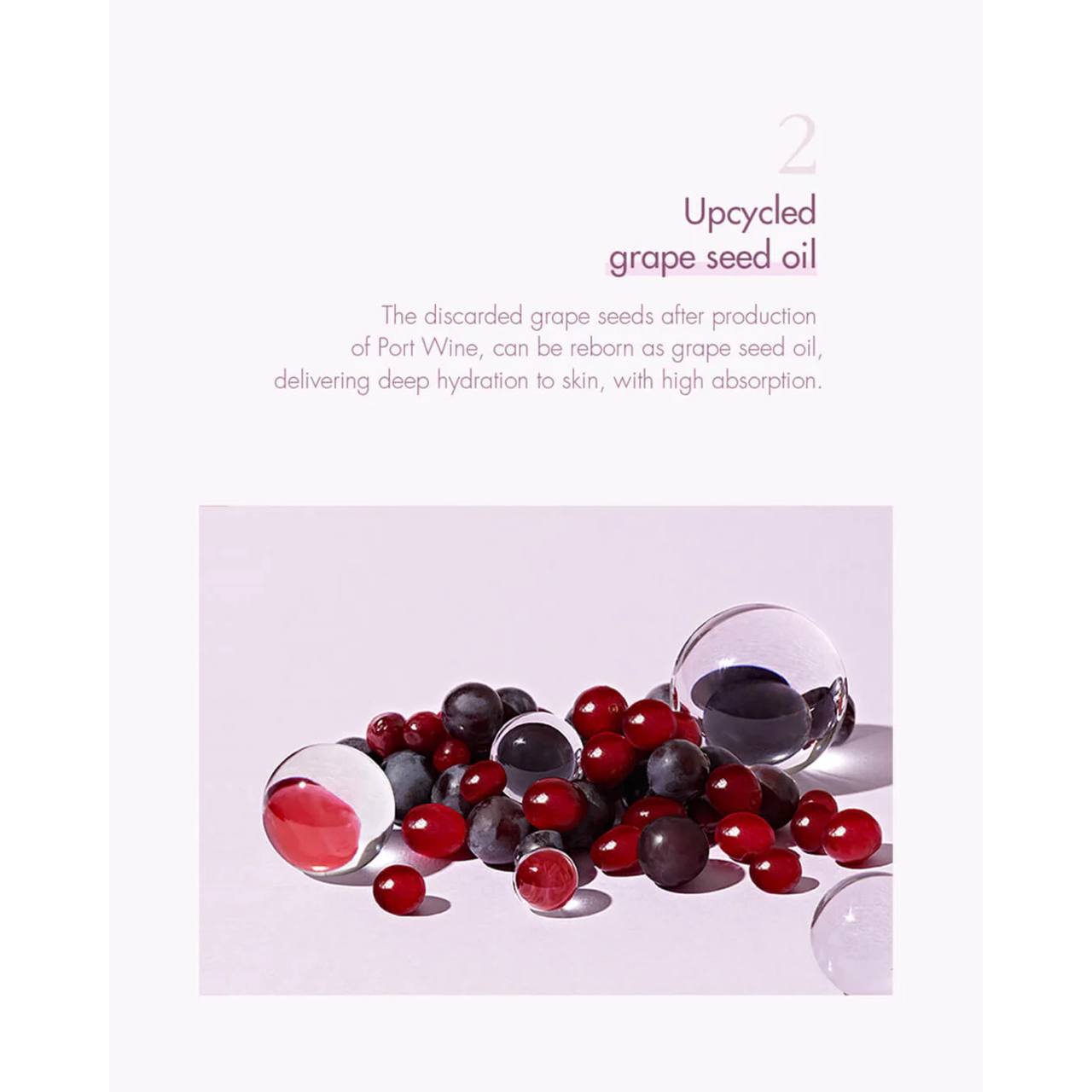 _ روغن هسته انگور بازیافتی یا همان روغن به دست آمده از هستههای انگوری که پس از تولید شراب دور ریخته میشوند، برای افزایش رطوبت و تقویت سددفاعی پوست.🍇💧