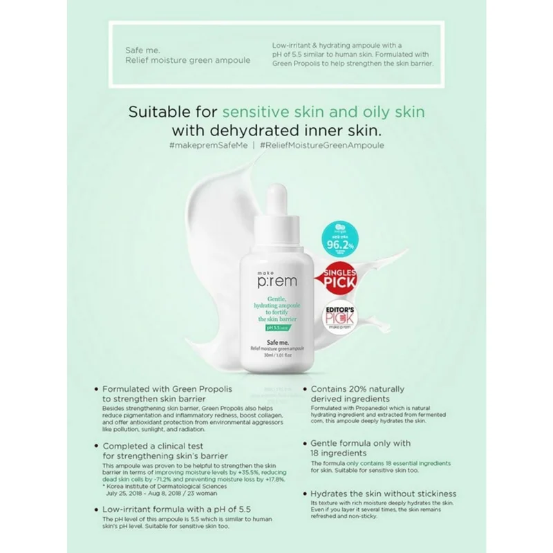 💚 Make P:rem : SAFE ME. Relief Moisture Green Ampoule 💚