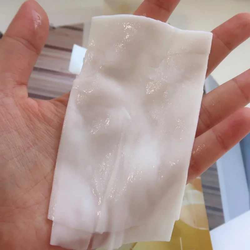 👈🏻 جنس ورقهی به کار رفته در این ماسک بسیار لطیف و بدون ریسک ایجاد حساسیت است و با اتصال کامل به پوست، به صورت کامل مواد فعال اسنس را به آن میرساند.💧☁️