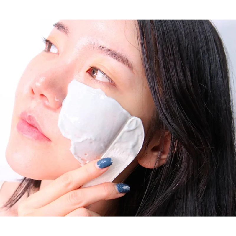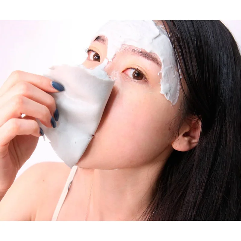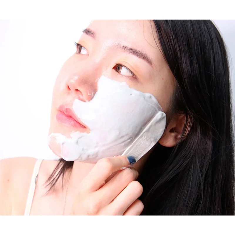 لایهی نسبتا ضخیمی از آن را روی پوست صورت قرار داده و پس از ۱۵ دقیقه و سفت شدن ماسک به صورت لاستیکی، آن را جدا کنید.