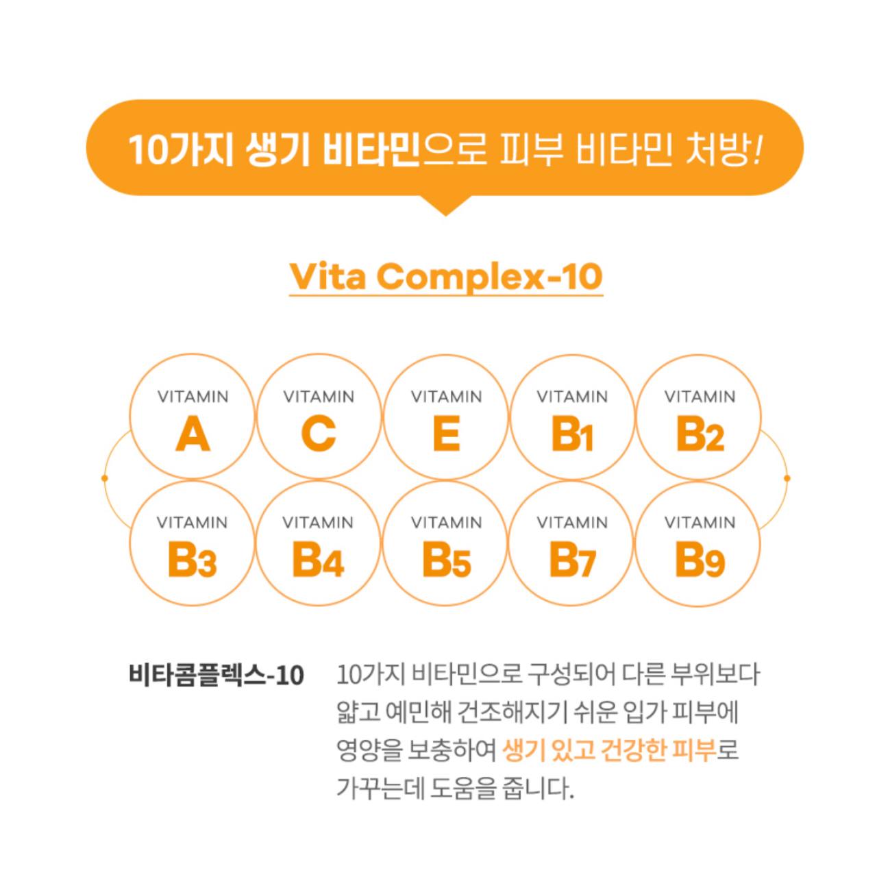 _کمپلکس دهگانه ویتامین های A, C, E, B1, B2, B3, B4, B4, B7, B9 که باعث رفع تیرگی پوست، افزایش خاصیت ارتجاعی پوست و افزایش سلامت آن میشود.🍊🧪