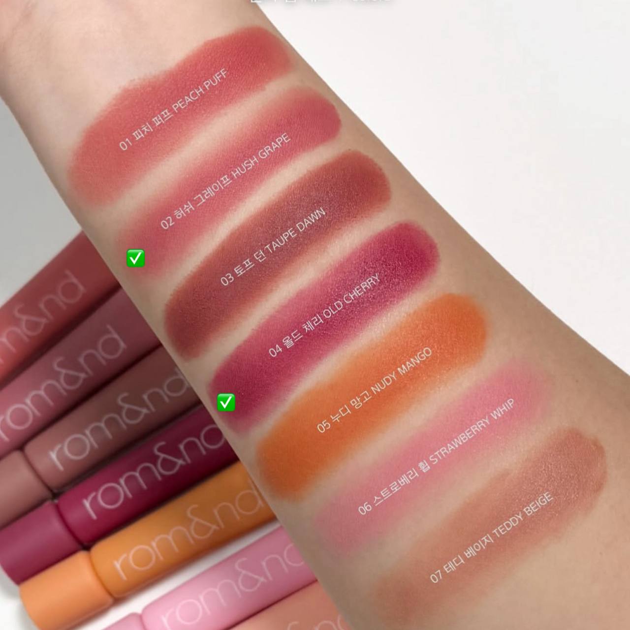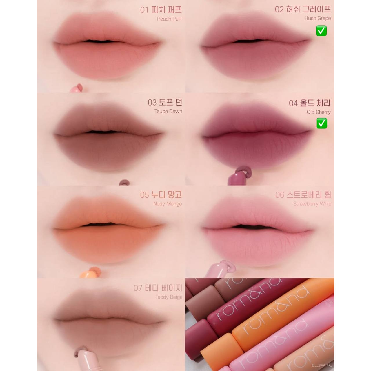 ✨ این محصول یک بام آرایشی مات و مخملی از برند آرایشی romand است که به ایجاد آرایش لب طبیعی و محو کمک میکند.💕👄