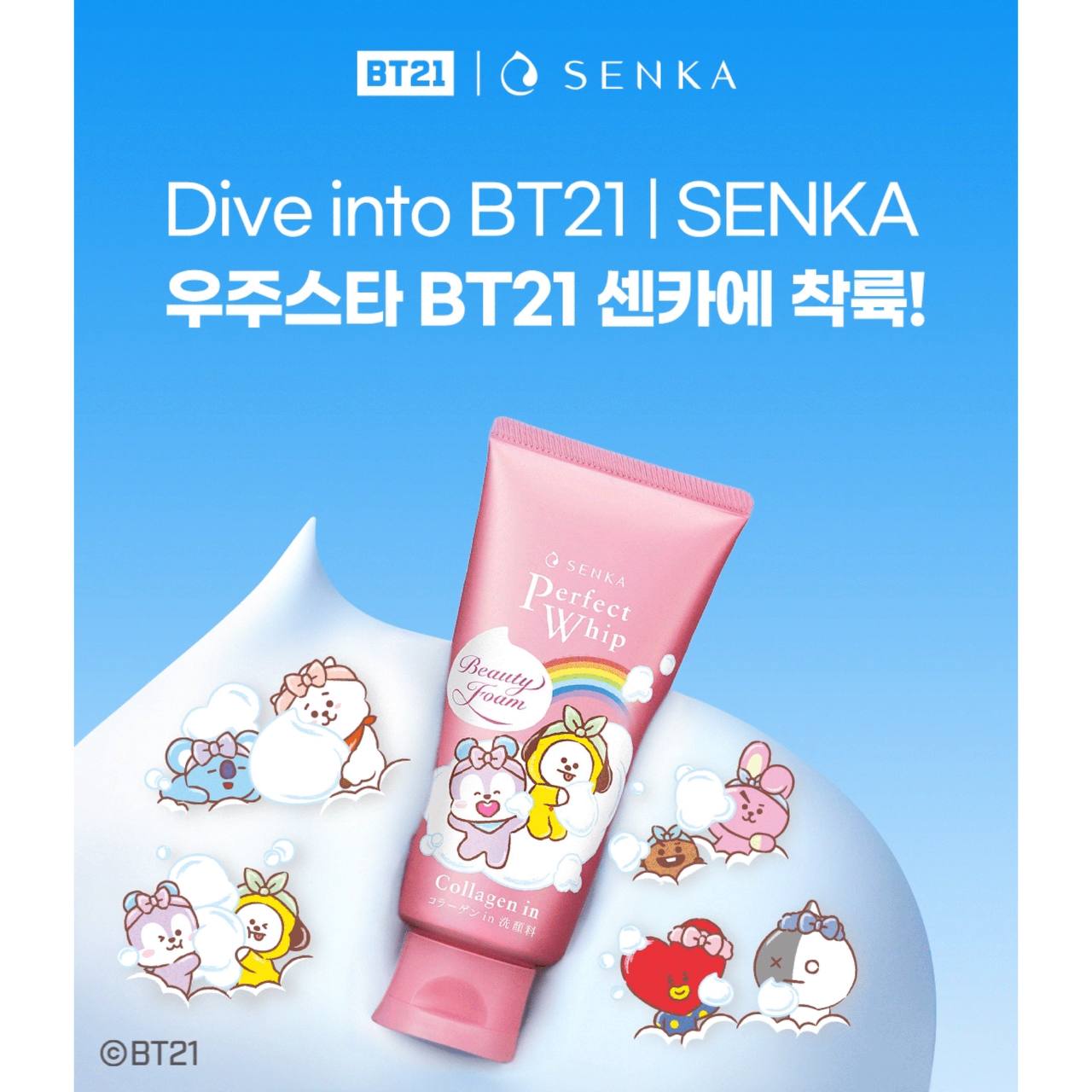 🩷 SENKA x BT21 : Perfect Whip Beauty Foam Collagen In 🩷