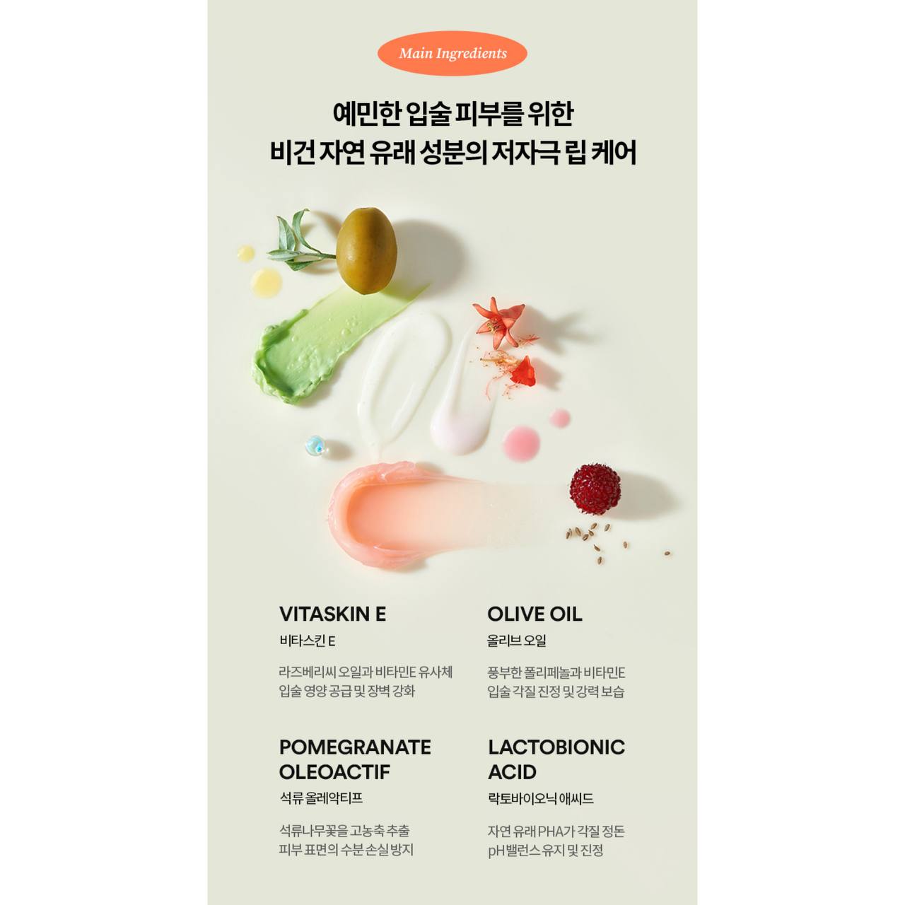 _ روغن زیتون که سرشار از پلیفنولها و ویتامین E برای تسکین پوست لب و افزایش نرمی و حفظ رطوبت آن میباشد. 🫒💧