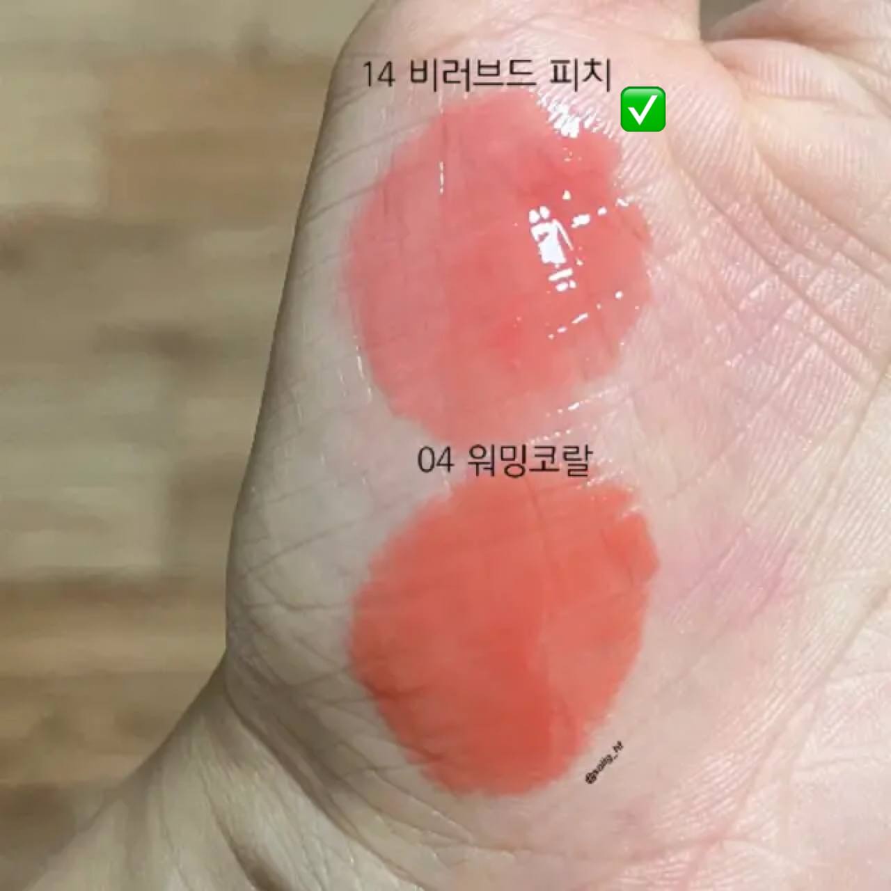 ✨ رژلب براق رنگ #14 Beloved Peach با بافت نرم، روان و مرطوب، فینیش براق و شفاف و آبنباتی.🍑✨💧