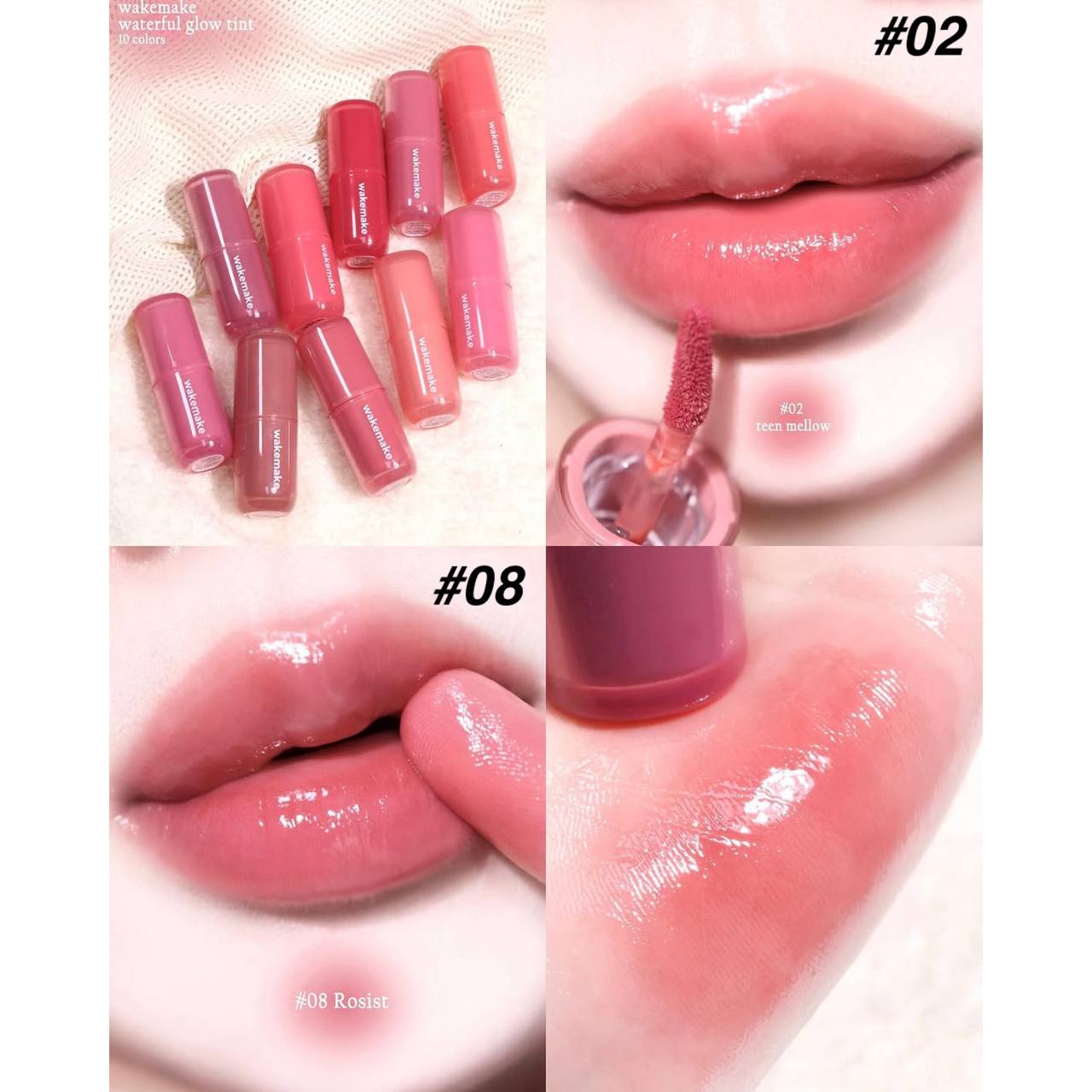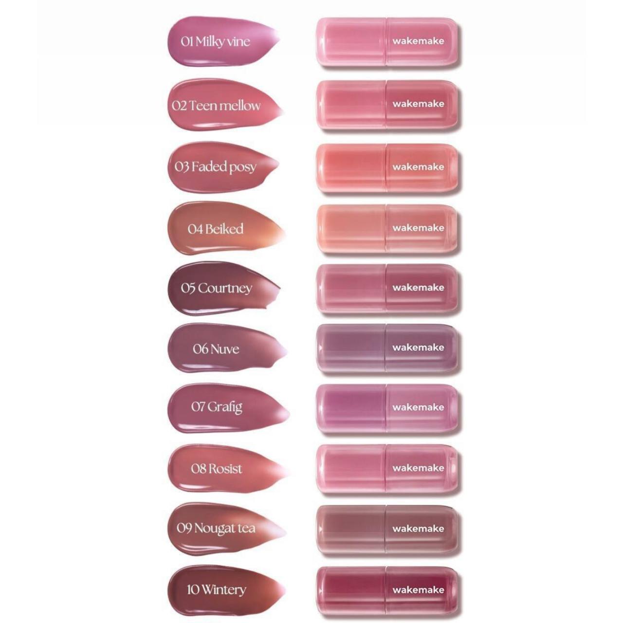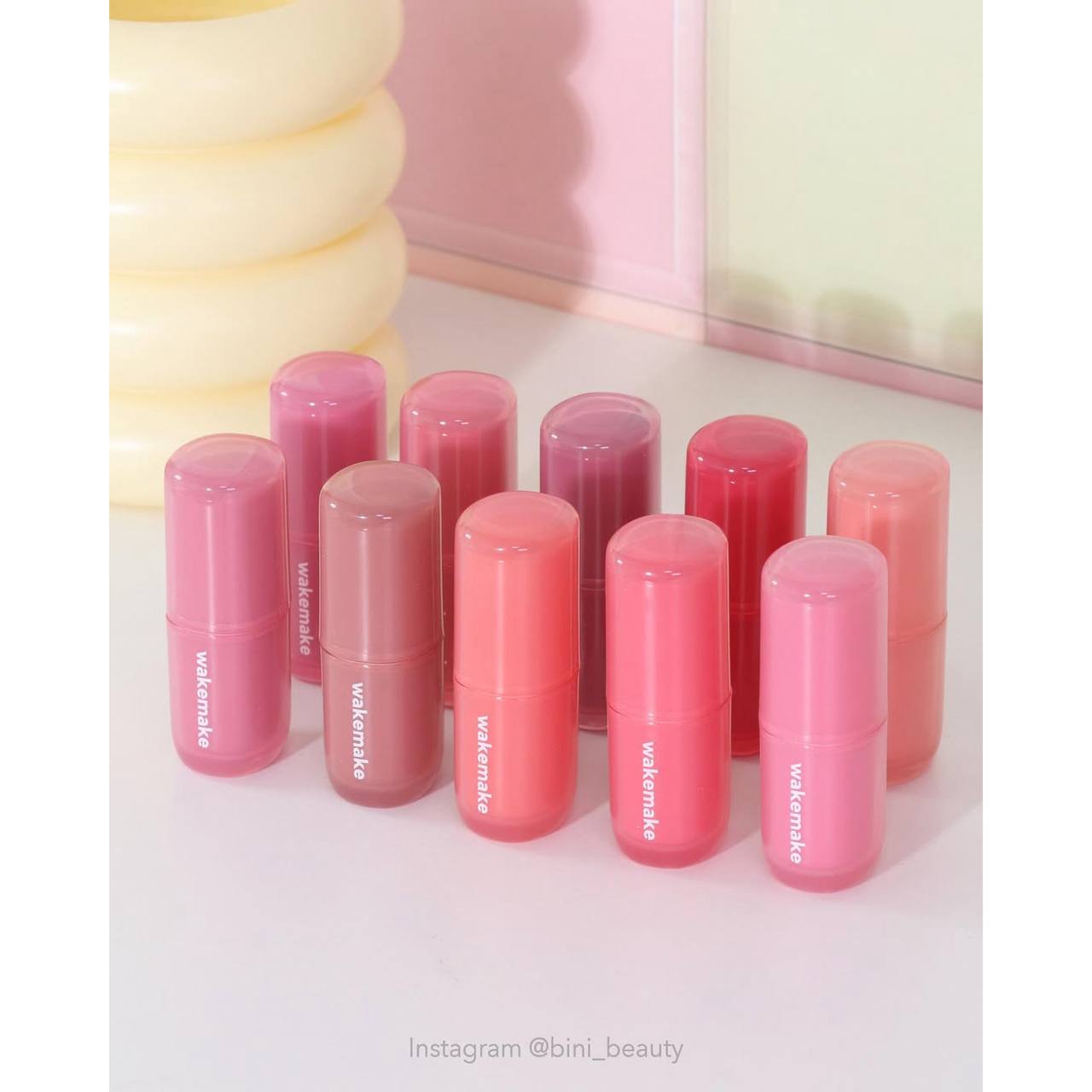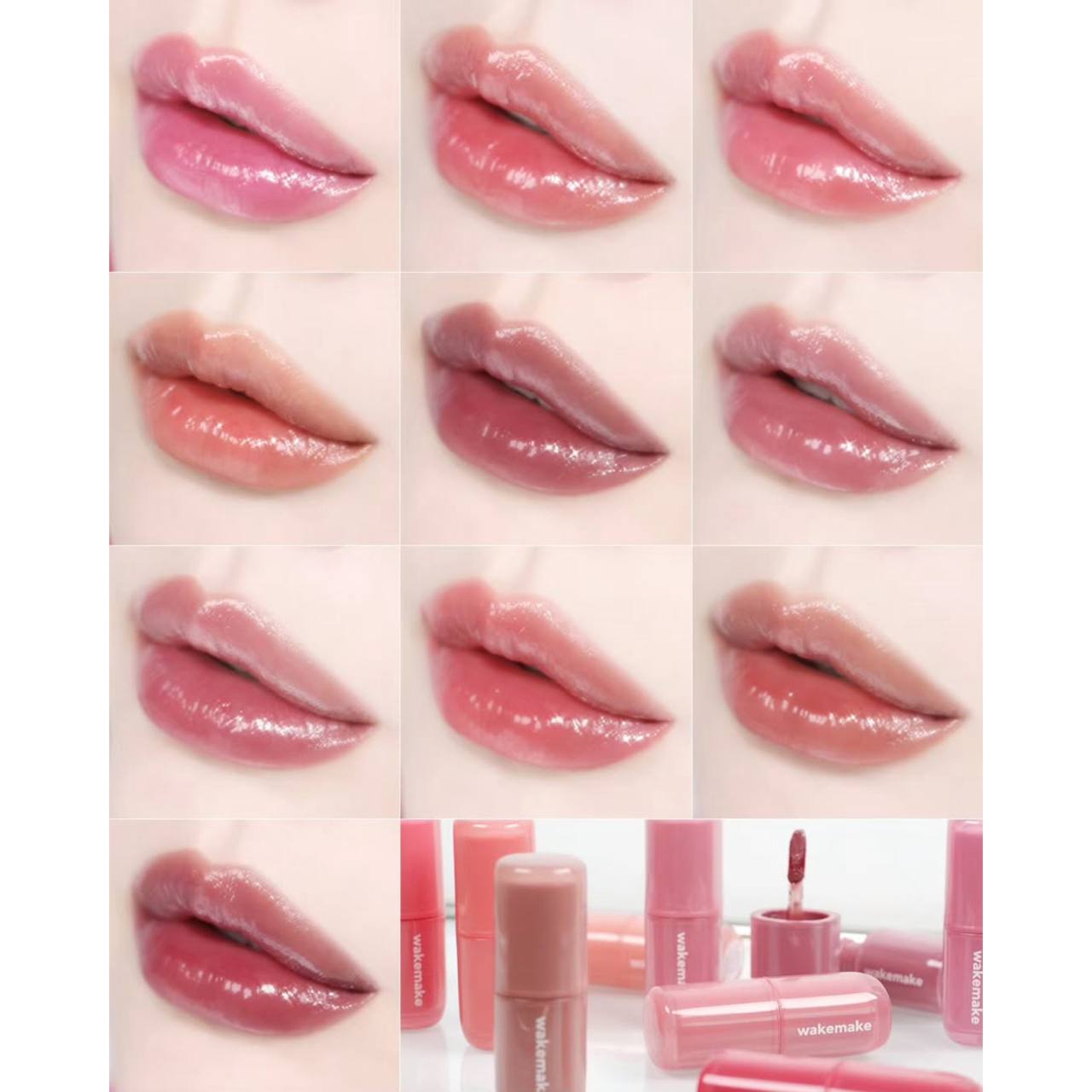✨ این محصول یک تینت لب براق از برند WAKEMAKE با طیف رنگی متنوع از صورتی روشن تا قهوهای فندقی میباشد.💕✨👄