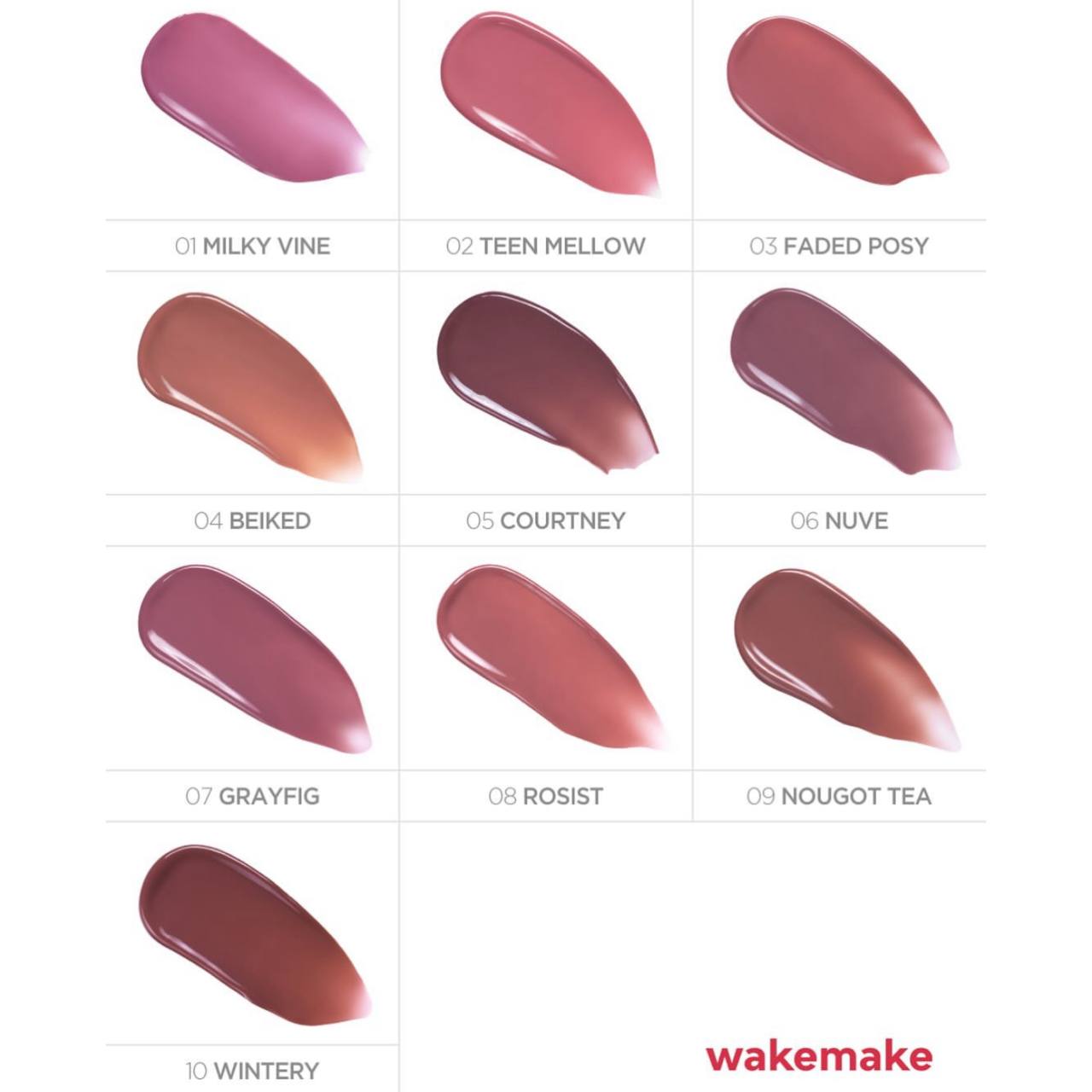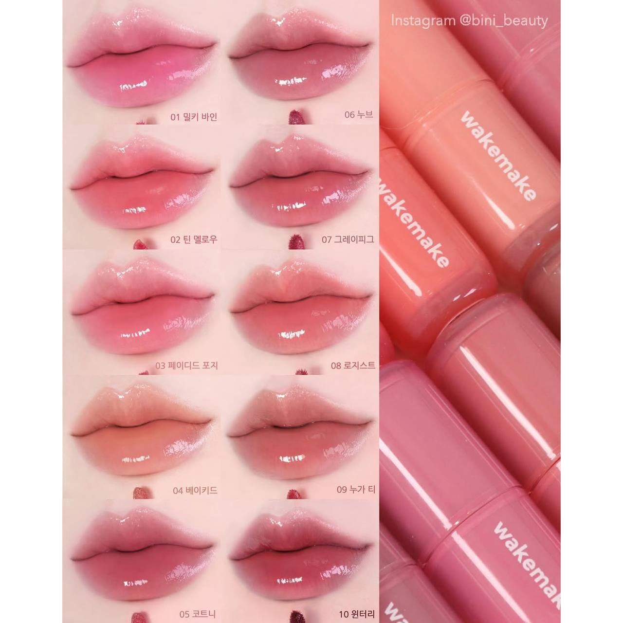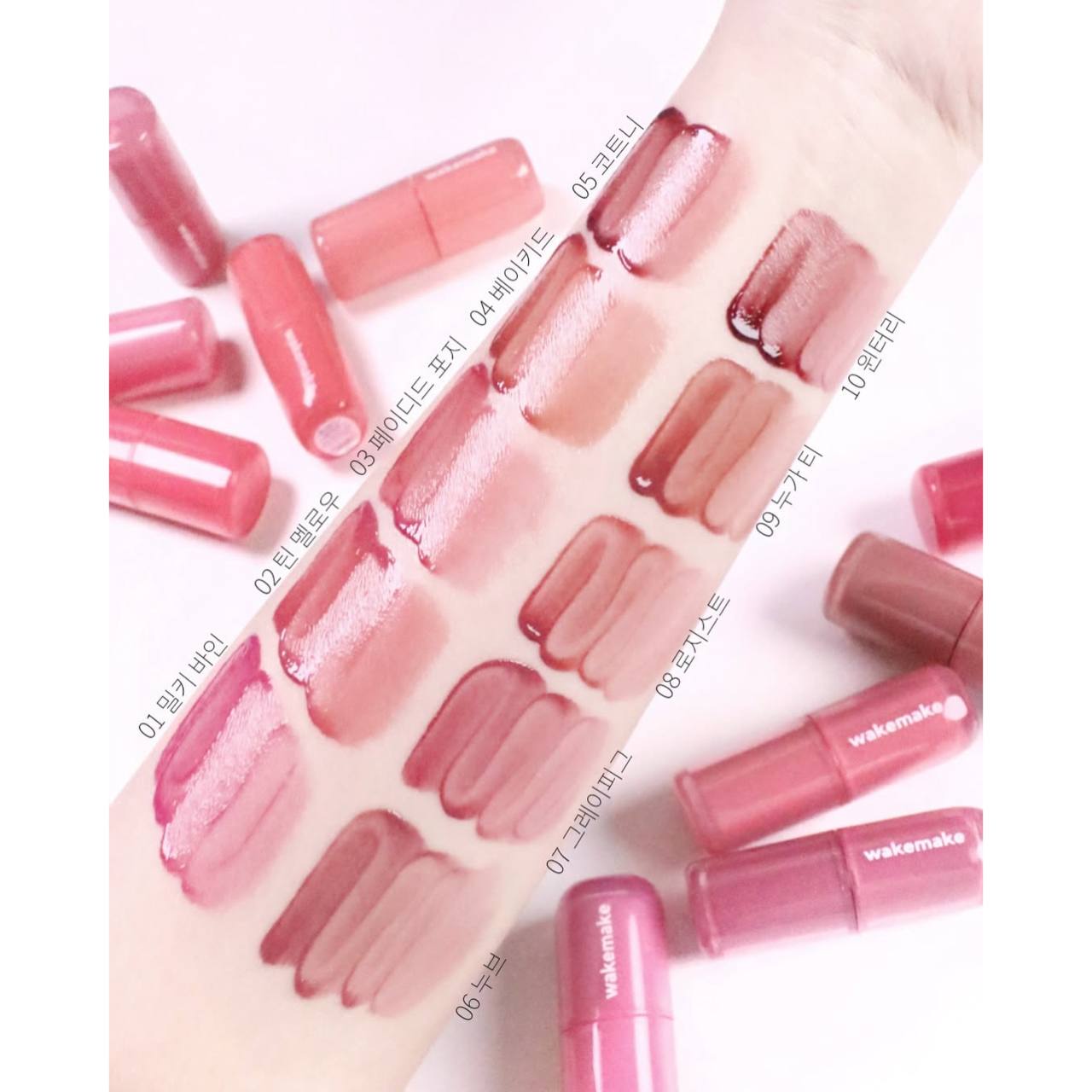 ✨ این محصول یک تینت لب براق از برند WAKEMAKE با طیف رنگی متنوع از صورتی روشن تا قهوهای فندقی میباشد.💕✨👄