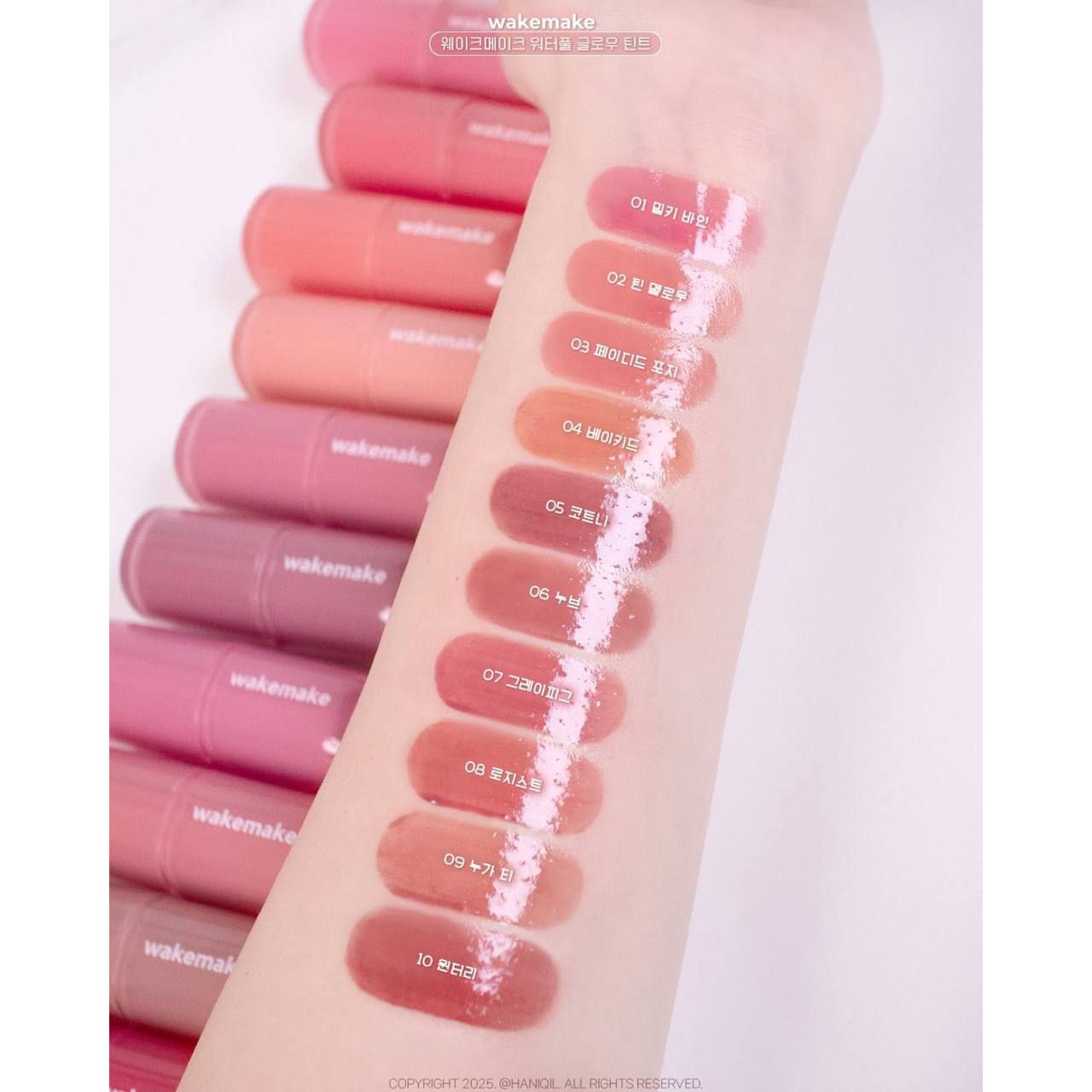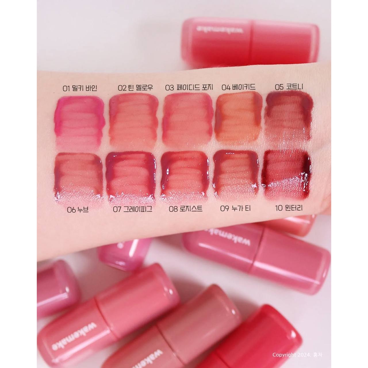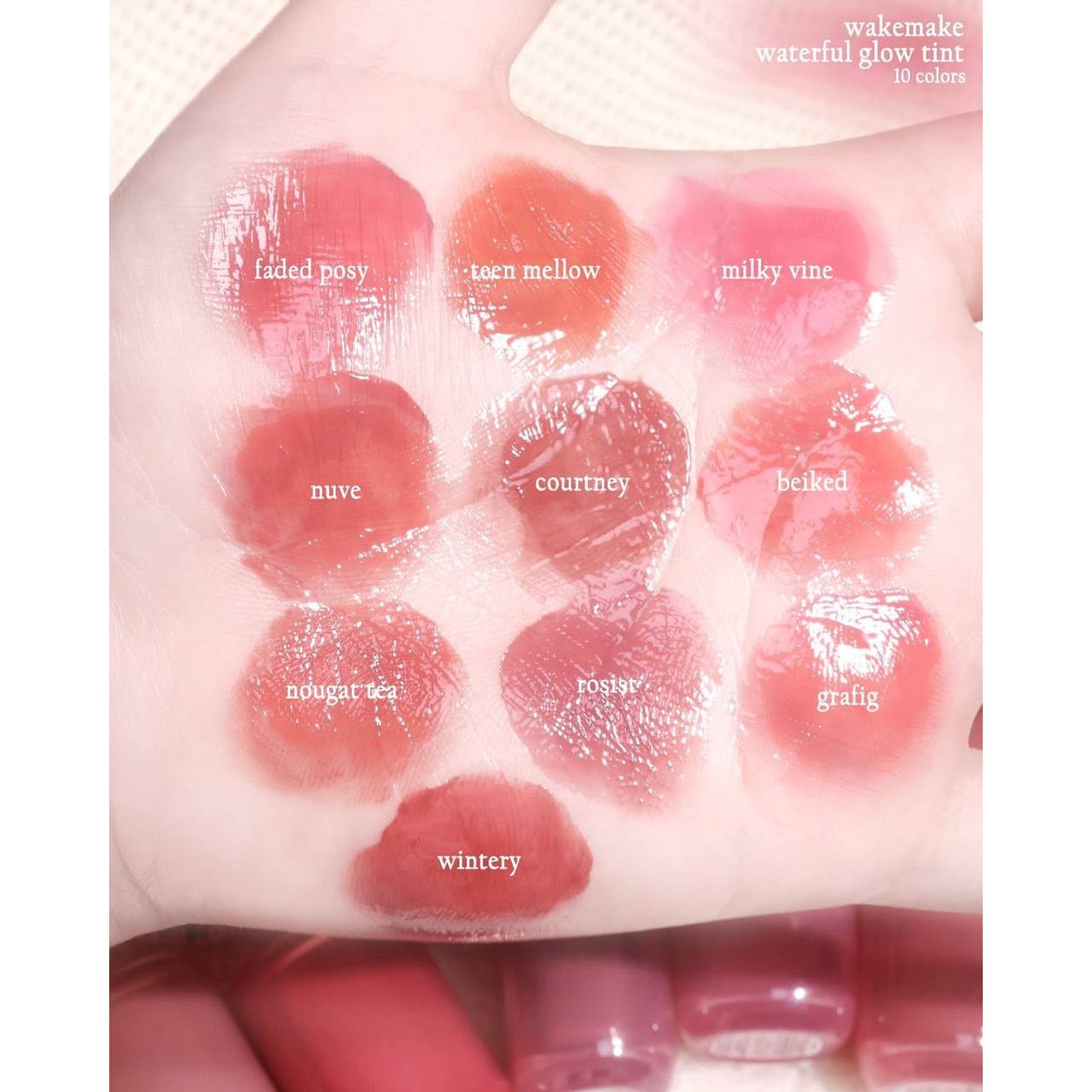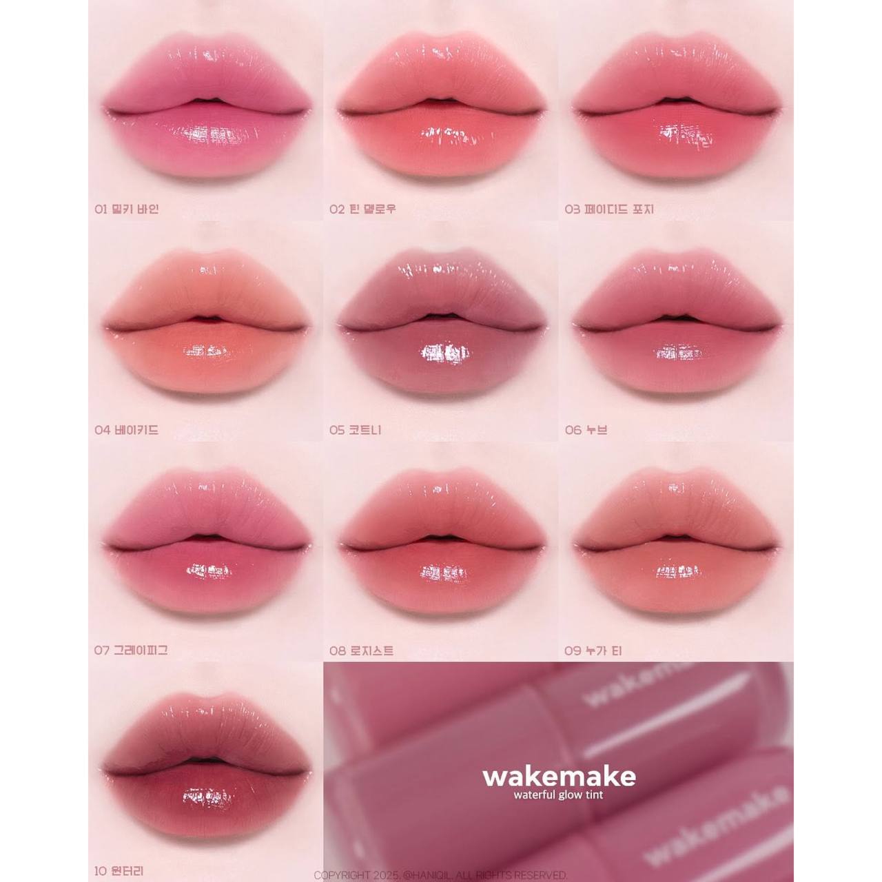 ✨ این محصول یک تینت لب براق از برند WAKEMAKE با طیف رنگی متنوع از صورتی روشن تا قهوهای فندقی میباشد.💕✨👄